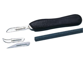Surgical Kit containing a Plastic Blade Handle, Sharpening Stone and 3 quality surgical blades: Nos. 10, 11, 12.