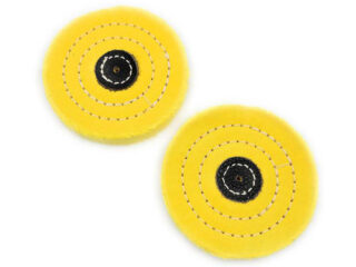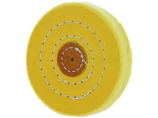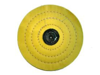Yellow Muslin Buff, Stiched with Leather Centre, Knife Edge 4”x12 Folds, 5”x12 Folds, 6”x12 Folds.